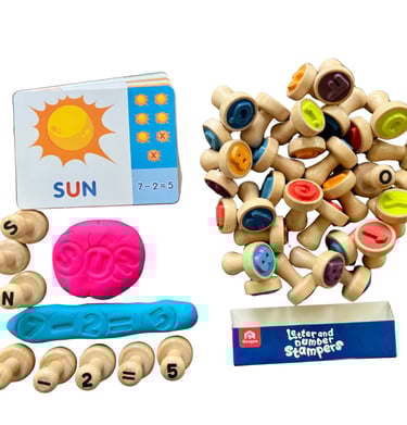 This letter stamp set is perfect for working on that pincer grasp, the stems are to small to hold it any other way. The stamps are thick and make deep impressions in Playdoh. It comes with activity cars so you can work on early math and literacy skills at the same time.