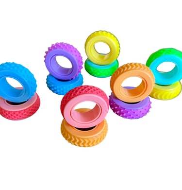 These bracelets are stretchy are squishy, bumpy and stretchy. They are quiet and low profile making them a great classroom desk or calming corner fidget.