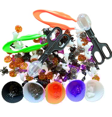 Halloween tweezer/tong sorting works on pre-scissor and pre-writing skills. These items could also be used as filler in a sensory box with rice or some other tactile filler.