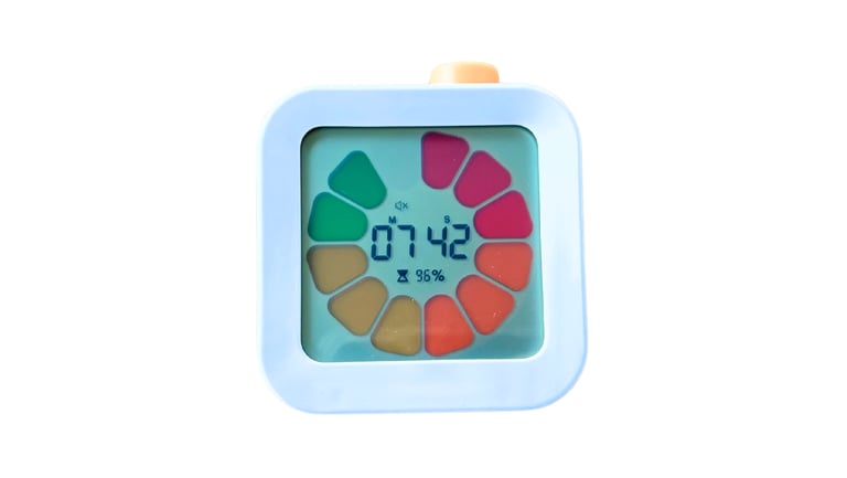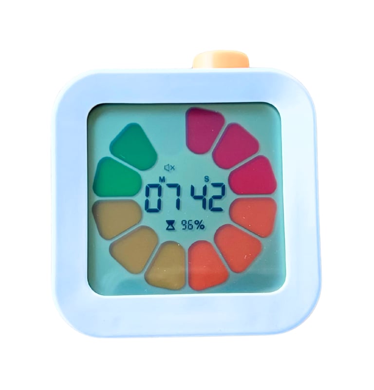 This visual timer gives a color coded count down and is the right size for a students desk. It has a silent mode so it's not distracting to other students. Very easy to set and operate.