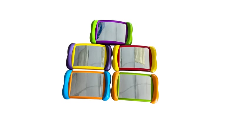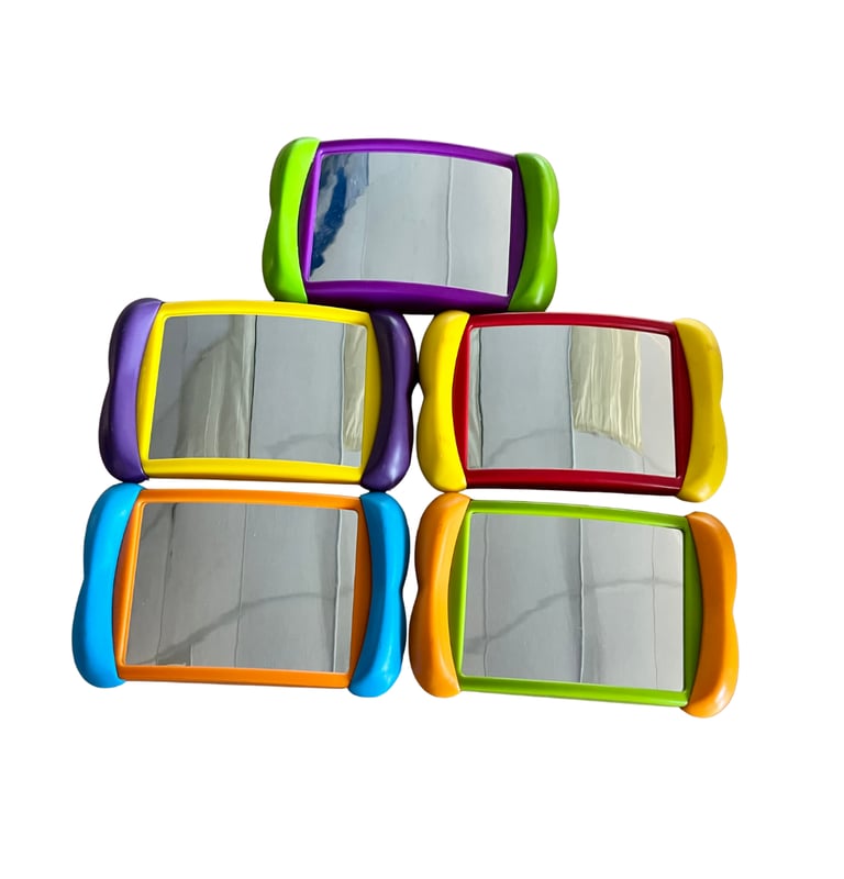 Practice making facial expressions with these mirrors. This is a really fun way to work on awareness of your own facial expressions and how to read other peoples facial expressions.